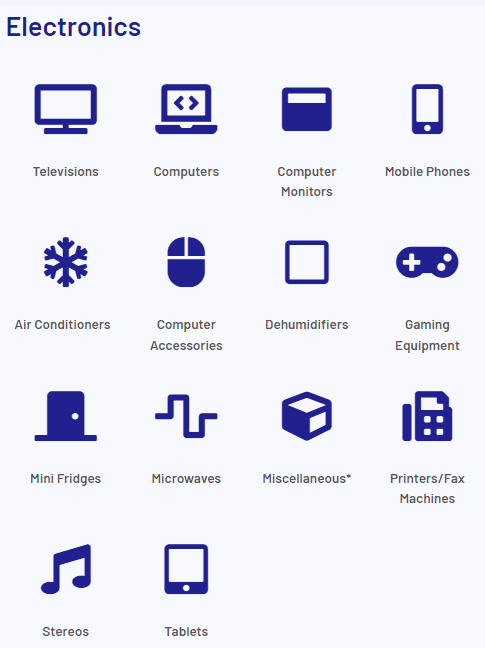 If you have large electronic items, please consider scheduling a pick-up with Retrievr. They accept a wide variety of items, such as TVs, air conditioners, dehumidifiers, mini fridges and others. They do charge a $12.50 doorstep pick-up fee, but all items are recycled rather than being taken to the landfill.